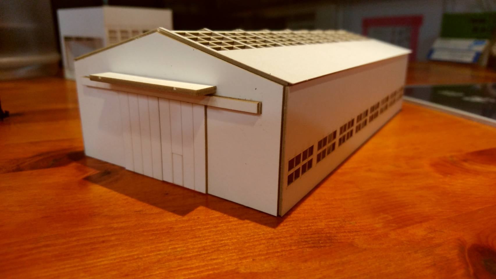 レーザー切り抜き済み、1/150(Nゲージ)の対向式ホーム屋根妻壁です。