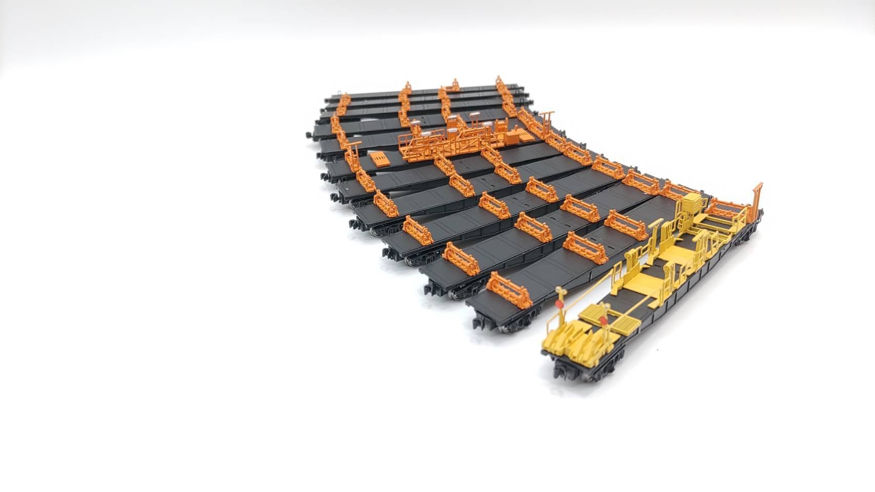 レーザー切り抜き済み、1/150(Nゲージ)チキ5500 レール輸送車タイプE(近畿・中国仕様) 12両のペーパーキットです。