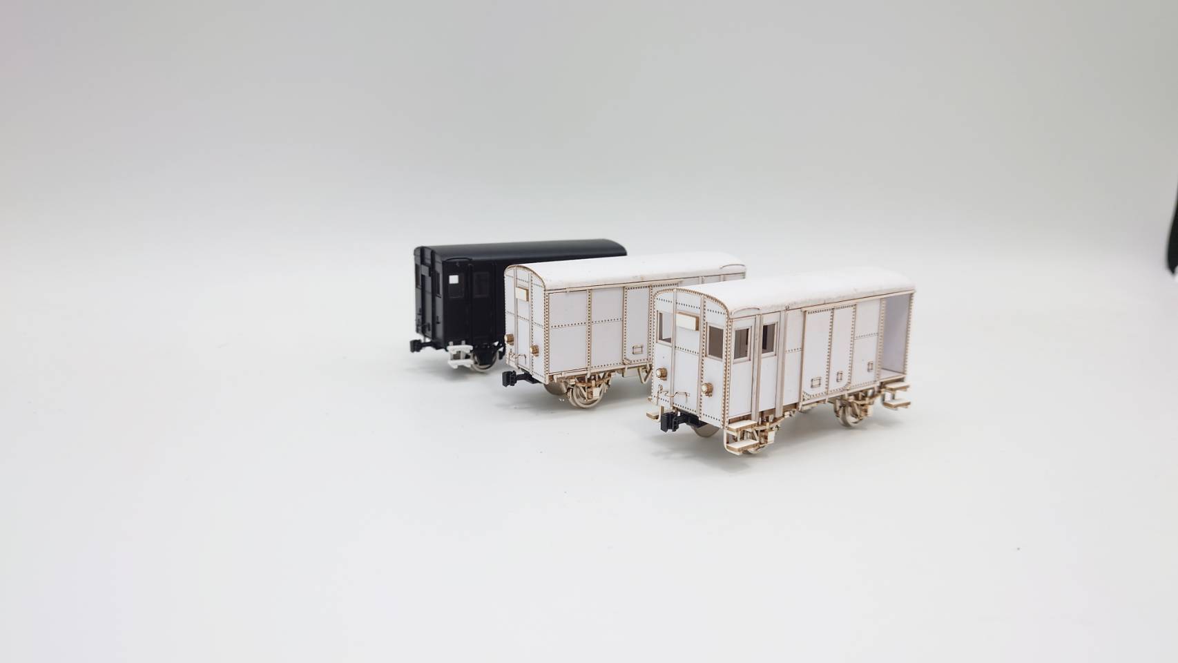 樹脂製台車、メタル製軸受けなど、ペーパー以外のパーツは未塗装になります。