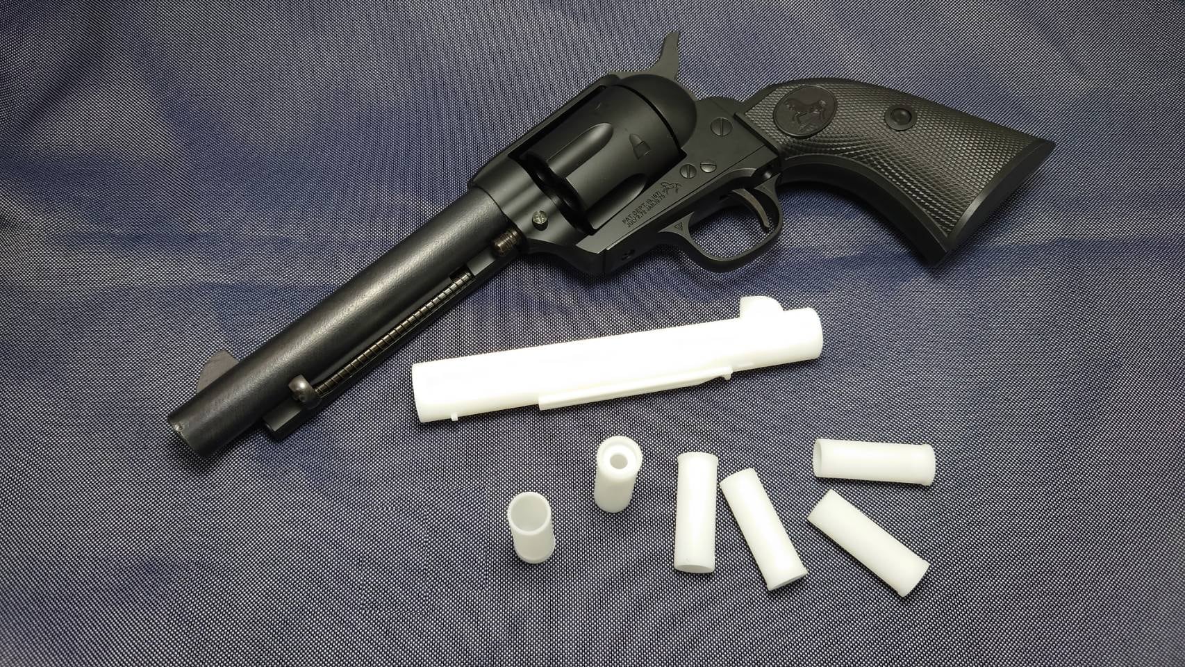 マルイ製SAAでスポンジ弾(ソフトダーツ)が撃てるようにできるバレルとカートリッジのセットになります。